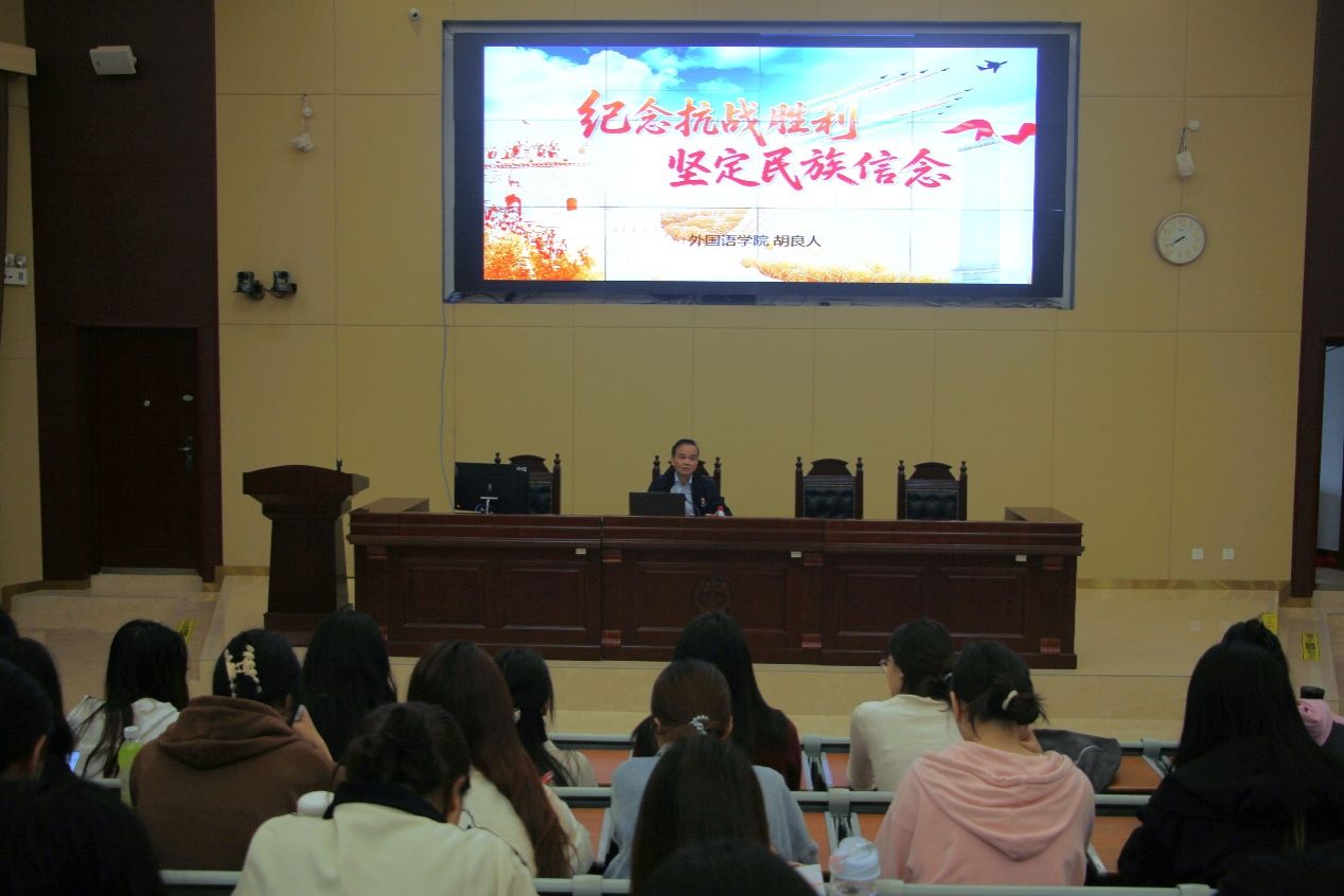 讲座中,胡良人书记以九三阅兵为切入点,回顾14年抗战历程并分述四阶段史实,阐明中国共产党在全民族抗战中的中流砥柱作用,指出抗战胜利洗刷了民族耻辱、确立了中国世界大国地位,为新中国成立和民族复兴筑牢基础。结合国际形势,他剖析百年变局下的世界格局与中国机遇,强调中国将坚持和平发展,践行全球安全倡议,推动构建人类命运共同体。针对青年,他寄语同学们牢记历史、传承红色基因,锤炼本领、勇担使命,将个人理想融入国家大局,厚植多元情怀,成长为新时代青年,为民族复兴贡献青春力量。整场讲座史料翔实、内涵深刻,兼具历史厚重感与时代感。