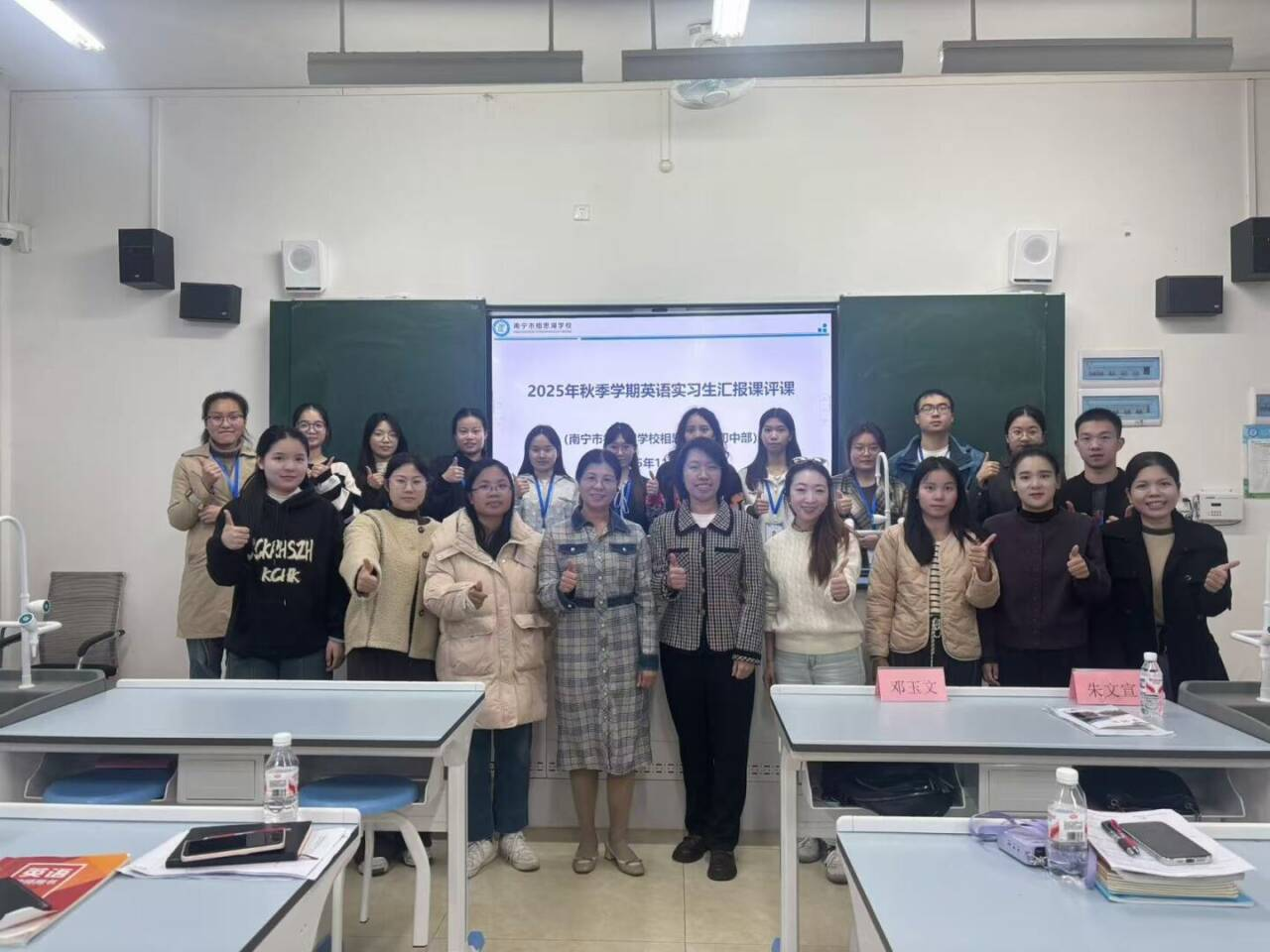 近日,我院2022级英语师范方向驻南宁市相思湖学校实习生,分七、八年级分阶段圆满完成教学公开课展示。此次活动旨在全面检验实习生课堂教学能力,展现其专业素养与阶段成长,得到相思湖学校领导、指导教师及我院的高度重视与大力支持。