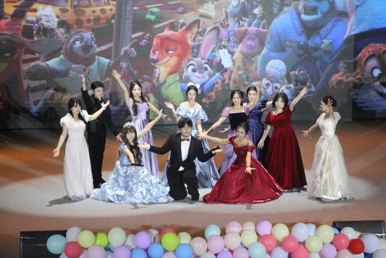 第二篇章“桥接·世界的回响”聚焦语言的联通价值,以丰富节目展现多元文化包容氛围。歌舞《Try Everything》活力洋溢,传递积极向上的青春态度;翻译系舞台剧《寻梦环游记》融合翻译专业特色与艺术表达,诠释跨文化沟通的温度;吉他弹唱串烧《The Golden Age》、英语系舞台剧《梁上君子》各具特色,或温情脉脉或诙谐生动;中场舞《Killin' It Girl》节奏明快,将现场氛围推向又一个高潮。一个个精彩节目淋漓尽致地展现了外院学子的跨文化素养,每一段旋律都镌刻时光印记,每一句歌声都传递真挚心意。