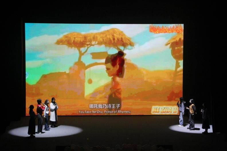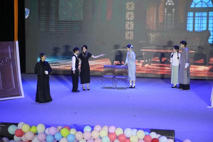 第一篇章“解码·文明的基因”以语言为载体深挖文化内核,生动诠释外语学科与中华优秀传统文化的碰撞交融之美。特邀表演环节中,课本剧《木兰辞》、多语朗诵《出师表》以多元语言演绎经典,将个人命运与家国大义紧密联结,让观众在沉浸式观赏中感悟中华儿女的责任担当与赤诚初心;英语配音《哪吒》以国际化表达讲述中国故事,让传统IP焕发全新活力;法语系演绎的话剧《雷雨》则以异域语言重构经典,带领观众走进曹禺笔下风雨飘摇的家族史诗,尽显多语种教学的专业实力。