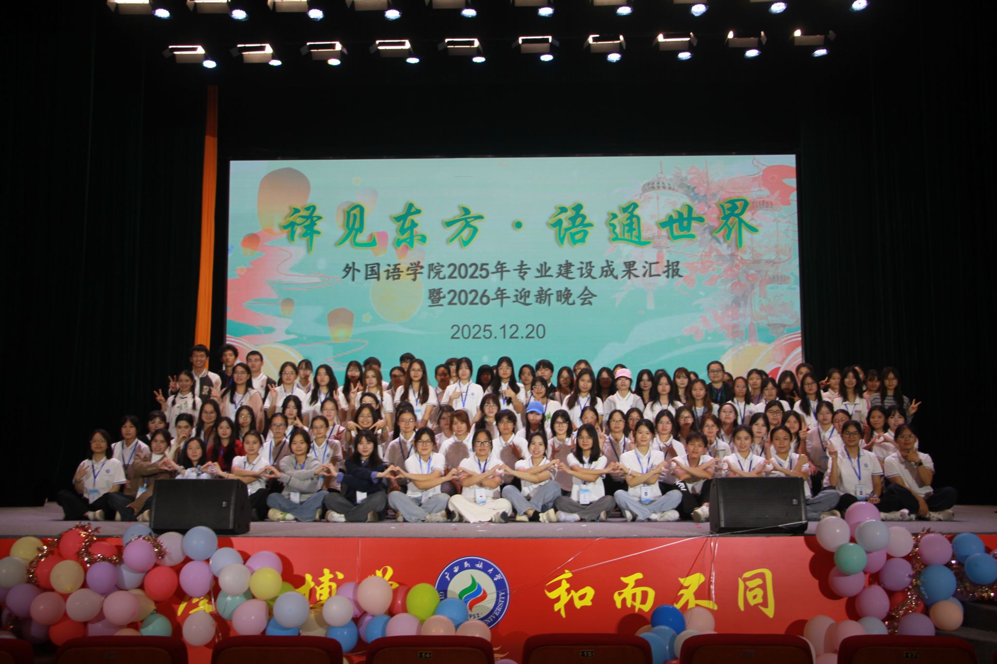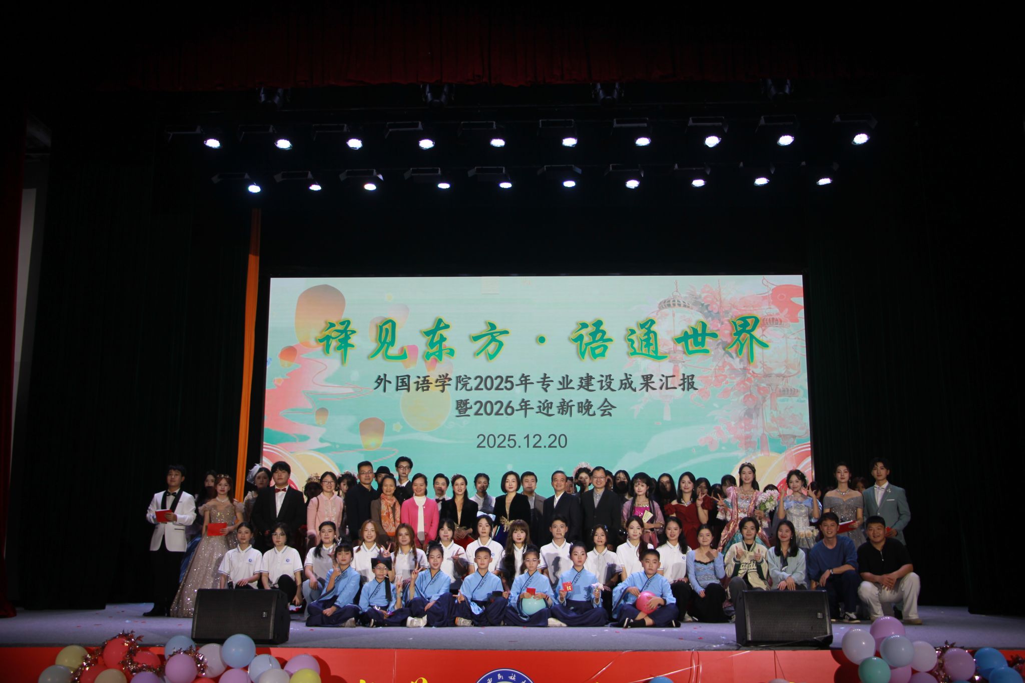 12月20日晚,必威西汉姆联官网“译见东方·语通世界”2025年专业建设成果汇报暨2026年迎新晚会在相思湖校区大礼堂顺利举办。学校党委宣传部副部长覃慧敏,学院党委书记胡良人,副院长潘艳红、肖志兵等多位领导莅临现场指导,与全院师生齐聚一堂,共赴一场兼具专业风采与文化底蕴的视听盛宴。