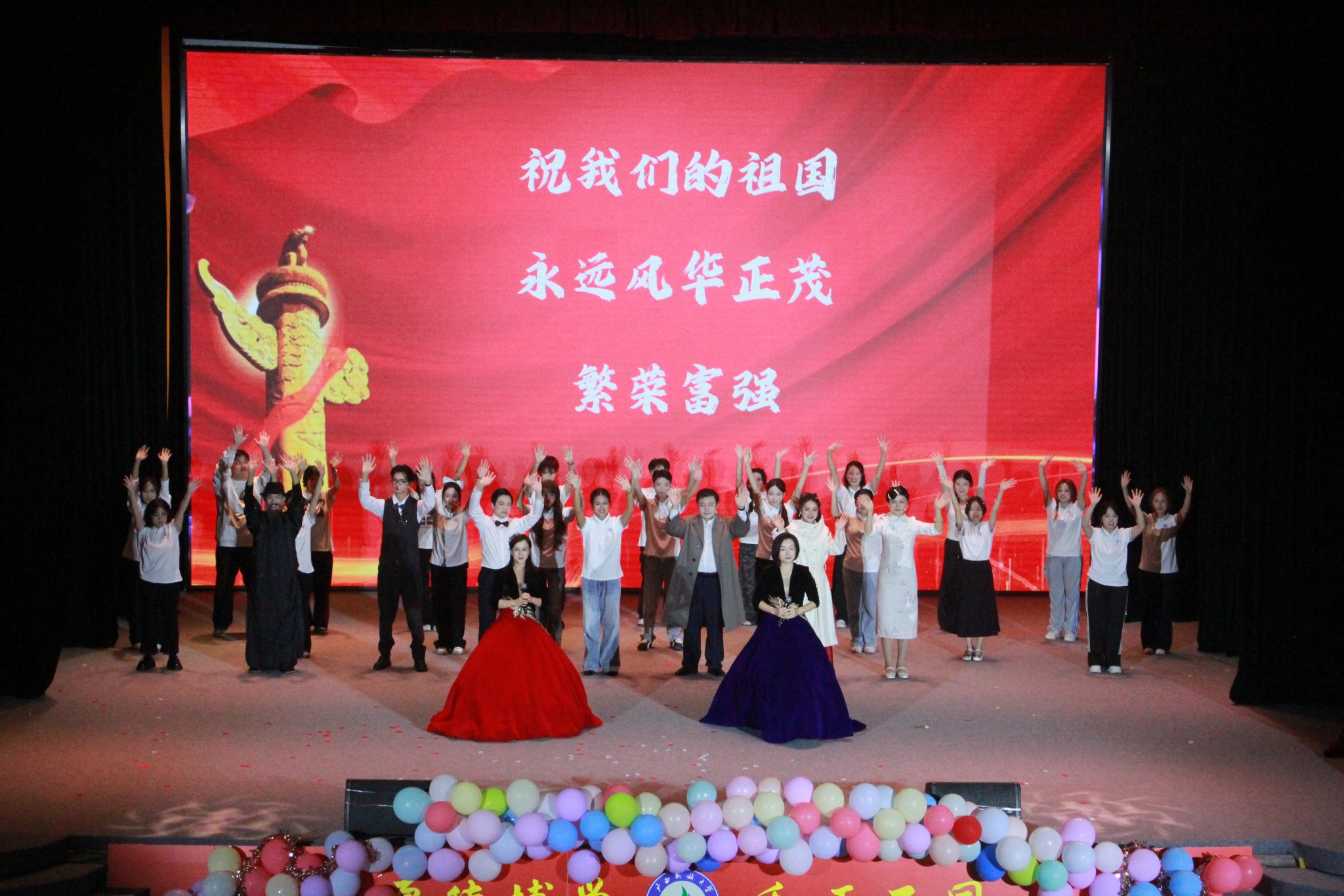 晚会在教师合唱《如愿》的婉转旋律中缓缓落幕。当青春的告白轻叩时代的回响,当先辈的期盼点亮今日的繁华,教师们以《如愿》旋律为底色,融入四幕情景朗诵,串联起青年热血告白、当下信念共鸣、先辈执着呐喊与“盛世如您所愿”的深情回响,悠扬歌声里满含师长对学子的殷切期盼,为整场活动画上圆满句号。