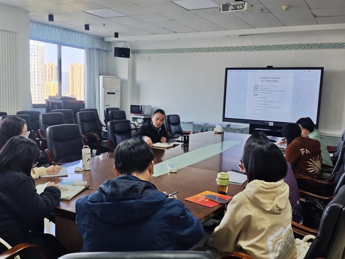 为扎实推进2026届毕业生就业工作,我院于2025年12月26日下午在国际教育综合楼1401会议室召开2026届毕业生第二次就业工作推进会。学院党委书记胡良人出席会议,各毕业班班主任、辅导员参加会议。