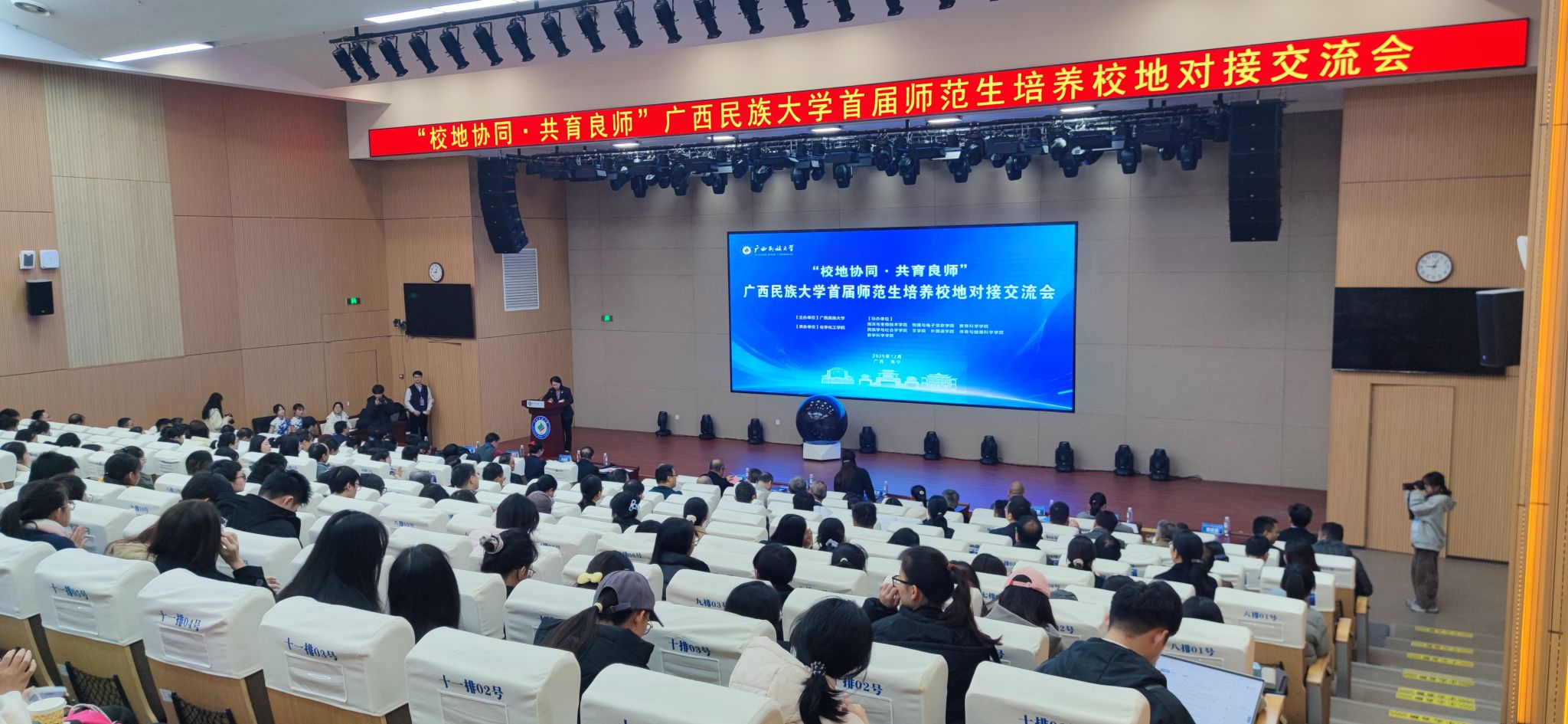 12月28日上午,广西民族大学“校地协同·共育良师”首届师范生培养校地对接交流会在相思湖校区文化研习基地208报告厅举行。本次会议以“精准对接基础教育需求,共探师范生校地协同培养新路径”为主题,搭建起高校与地方协同育人的对话平台,旨在汇聚智慧、共商方案、共建机制,为培养高素质师范生注入新动能。必威西汉姆联官网党委书记胡良人、院长刘雪芹率学院师生代表参会。