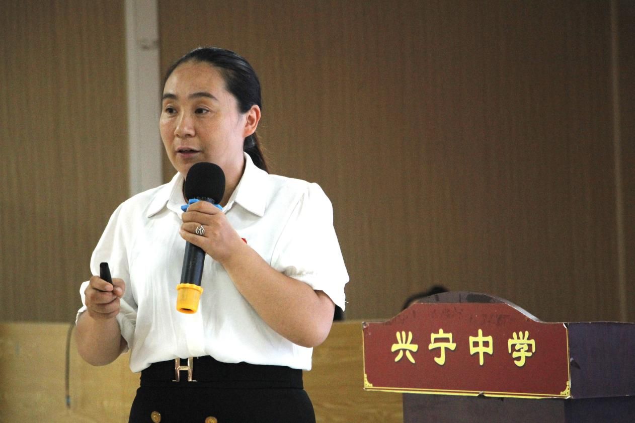(兴宁中学党支部书记兼校长王玉琴老师介绍支部情况)