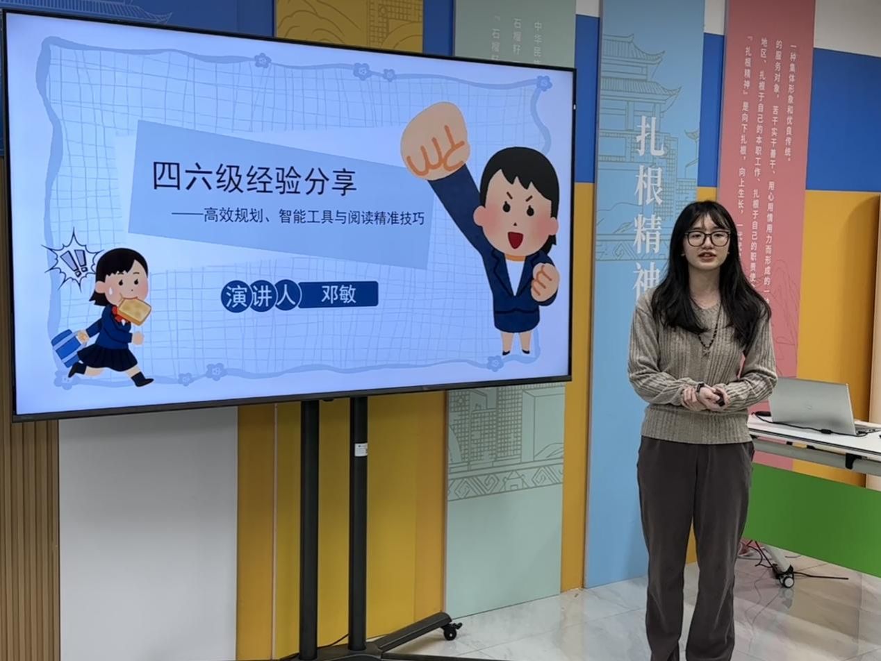 (邓敏同学正在分享四六级阅读理解的答题方法与篇章分析技巧)