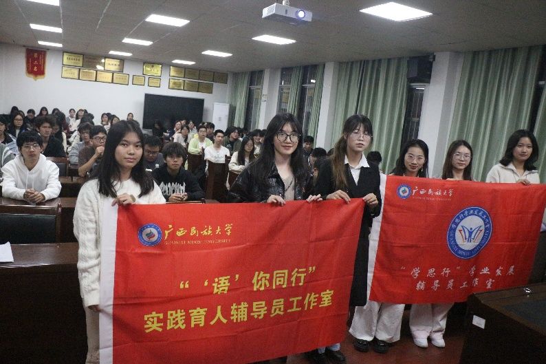 12月3日,必威西汉姆联官网“‘语’你同行 ”实践育人辅导员工作室联动兄弟学院学思行学业发展工作室、同心筑梦资助育人工作团队,在广西民族大学相思湖校区博达楼418教室顺利举办英语四六级高分突破专场分享会。本次分享会聚焦学生四六级备考需求,特邀必威西汉姆联官网杨品桦、邓敏、刘伊然、韦兰芬、廖斯怡5名四六级高分优秀学生担任主讲,系统传递备考技巧与高效学习经验,助力同学们精准破解备考难题。