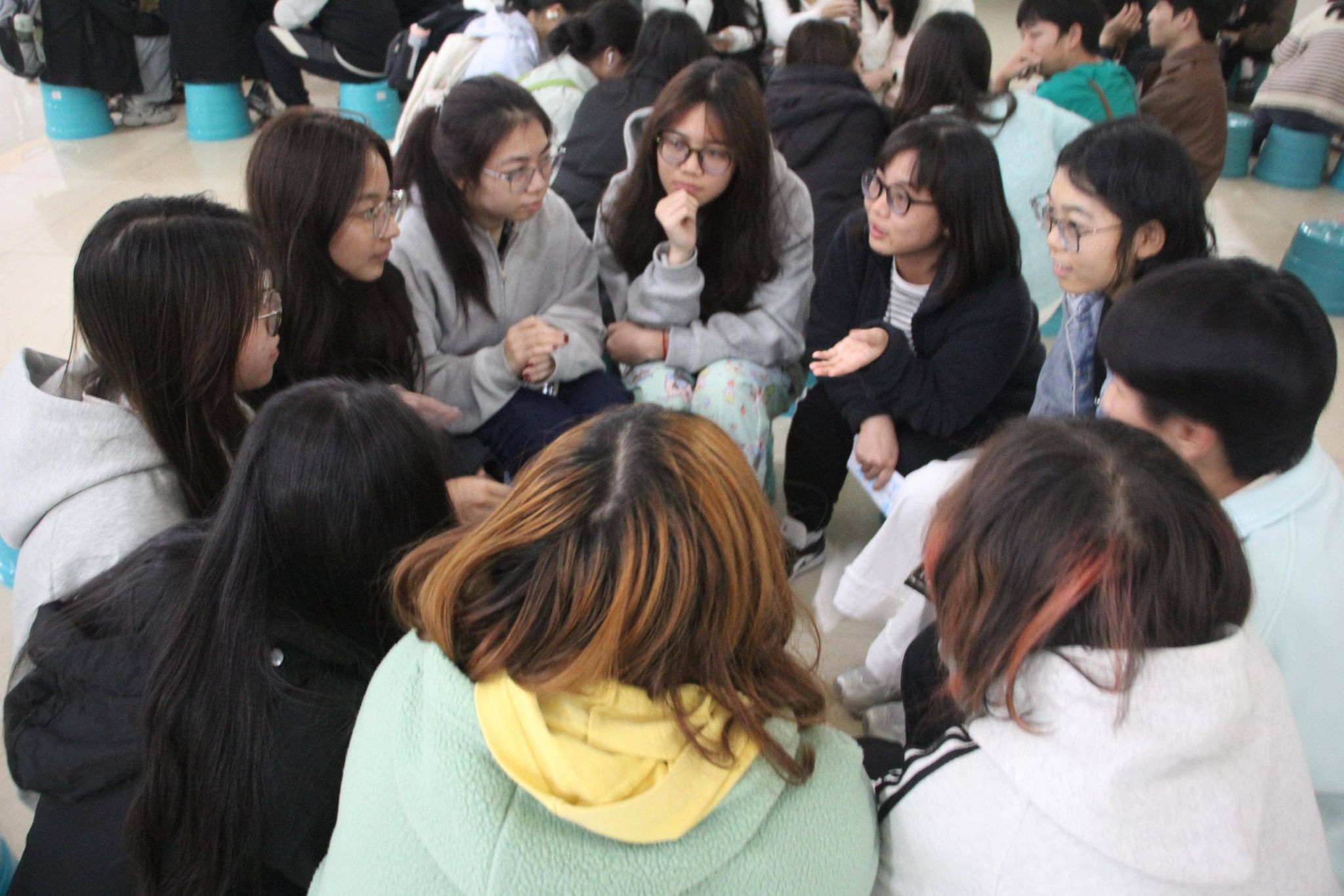 (同学们正认真交流各自想法)